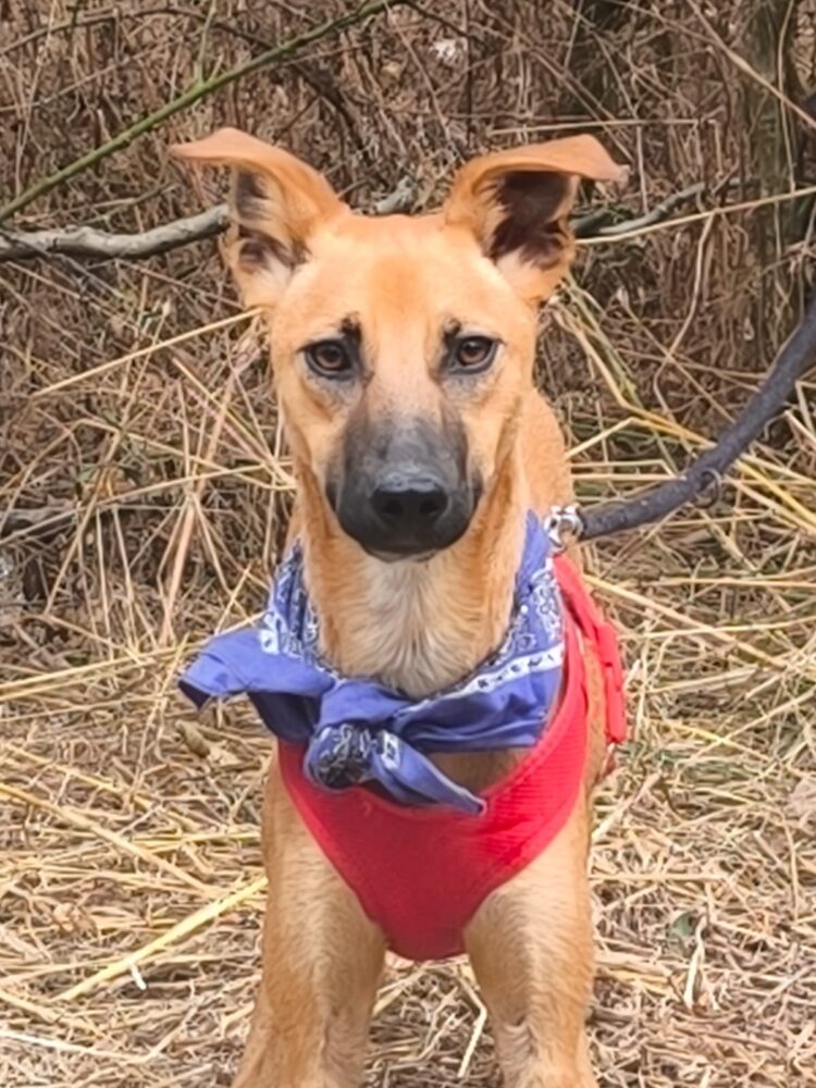 DENIS ist ein 10 Monate alter Mischlingsrüde, geboren am 28.12.2024, mit einer Schulterhöhe von 45 cm - er wurde mit kurzer Rute geboren.