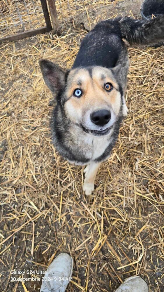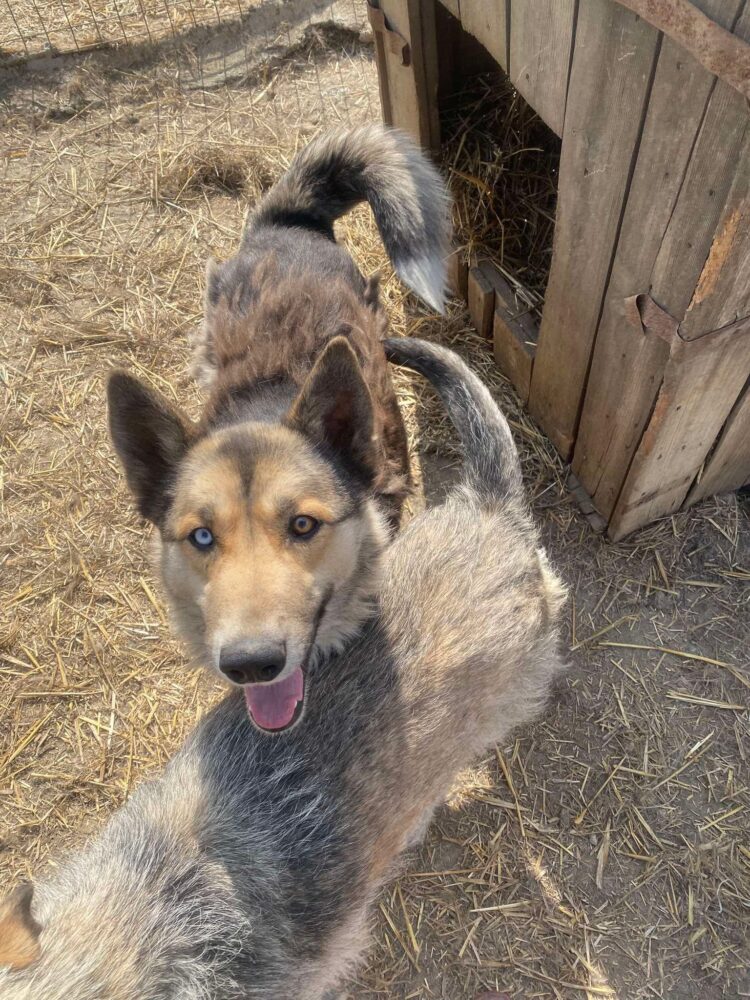 Darf ich vorstellen? Izzy, unsere wunderschöne Schäferhund-Mix-Hündin mit dem besonderen Blick – ein strahlend blaues Auge macht sie zu einer echten Hinguckerin!