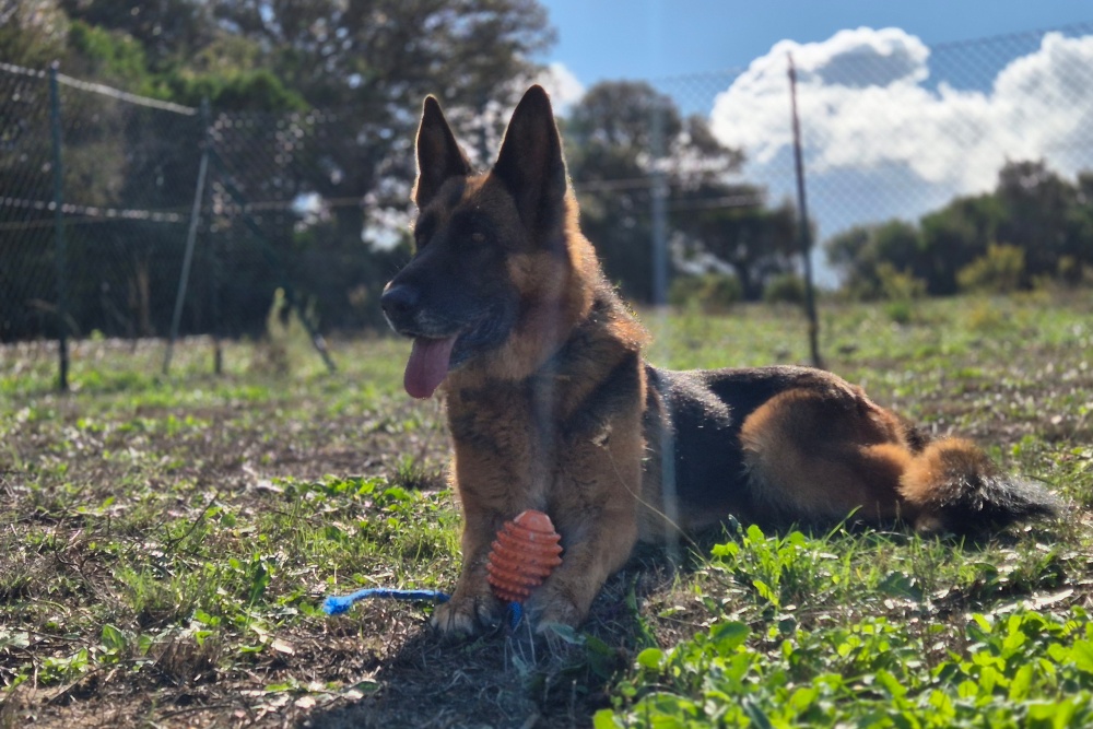 Auf der Station hat sich gezeigt, dass Alma einfach unterfordert ist – sie braucht Aufgaben, Bewegung und geistige Beschäftigung. Schäferhund-typisch läuft sie gerne ihre Patrouille entlang des Zauns und beobachtet alles ganz genau. Ihr wacher, aber ruhiger Schutzinstinkt zeigt, wie viel Charakter und Intelligenz in ihr stecken.