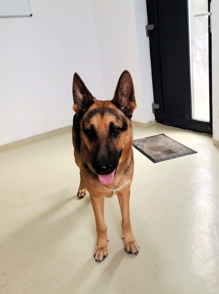 Figo von Rumänien ist ein ca. 1-2 Jahre alter, kastrierter Schäferhund mit einer Schulterhöhe von 61 cm und einem Gewicht von 30 kg (sollte noch zunehmen). Sein Charakter ist ganz typisch für einen Schäferhund: Er ist sehr zutraulich zu allen Menschen, loyal, anhänglich, liebt seinen Menschen ganz besonders, ist ihm zugewandt und sehr verschmust. Figo lässt sich überall anfassen, zeigt keinen Futterneid, ist stubenrein, liegt neben dem Bett und schläft friedlich durch. Er reagiert auf seinen Namen, kennt schon Kommandos wie Sitz, Platz, Pfote und fährt angeschnallt entspannt im Auto mit. Beim Gassigehen läuft er gut an der Leine und hört auf "Komm" Allerdings sind Leinenbegegnungen mit anderen Hunden noch eine Herausforderung hier geht er mit hoher Kraft voran und verbellt auch den anderen Hund.