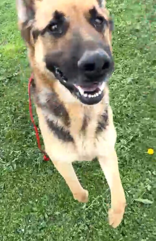Es kommt regelmäßig ein Trainer vorbei. Dadurch habe ich gelernt was ein Geschirr und Halsband ist und wie man damit an der Leine läuft. Ich kann auch schon ein paar Kommandos. Wenn mich der Trainer ruft komme ich auch zurück. Ich arbeite gerne mit dem Kopf und bin neugierig.