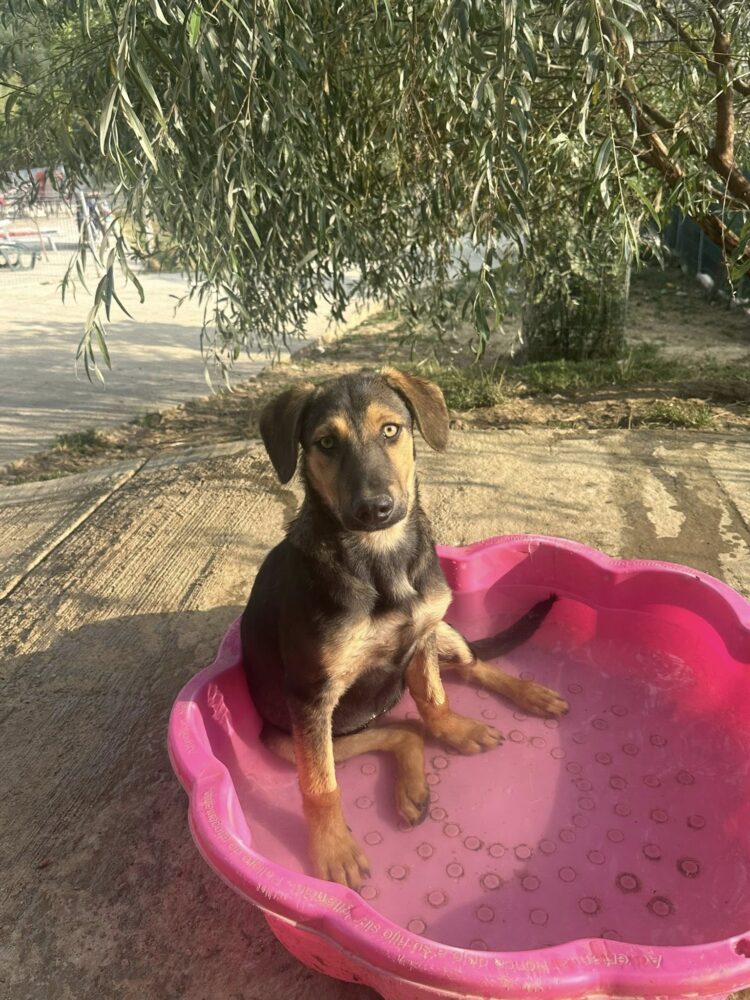 Mimmi ist im Camp der Tierschützer. Sie hatte Glück, denn auf der Strasse hätte sie nicht lange überlebt. Mimmi zeigt sich als freundliches, verspieltes Welpenmädchen. Die Kleine sucht die Nähe der Menschen und ist oft traurig, da die Zeit dafür fehlt.