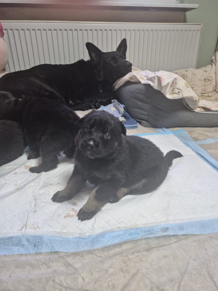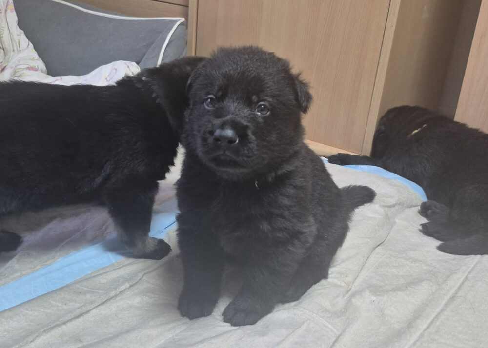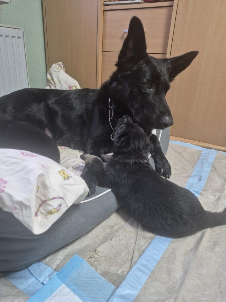 Lackschwarze Schäferhundwelpen aus Leistungslinie